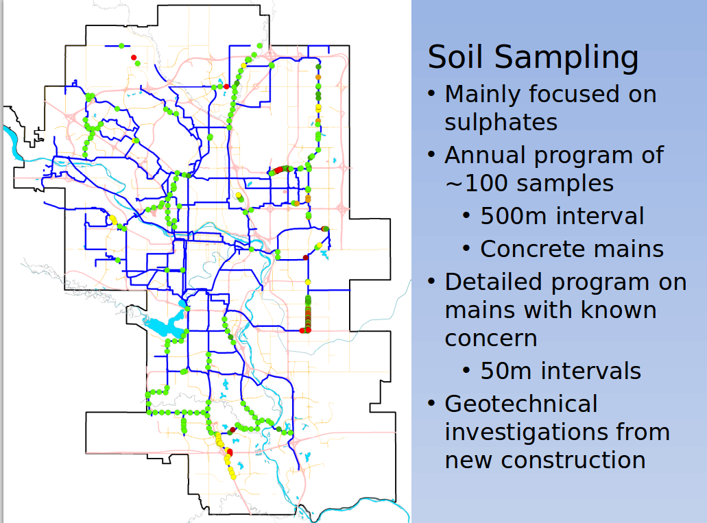 This informed the soil testing program, that's the cheapest thing we could do across hundreds of kilometres of mains. You augur down a few metres and grab a bag of soil, send it to a lab. Event that, I'm afraid, costs a thousand bucks a sample.